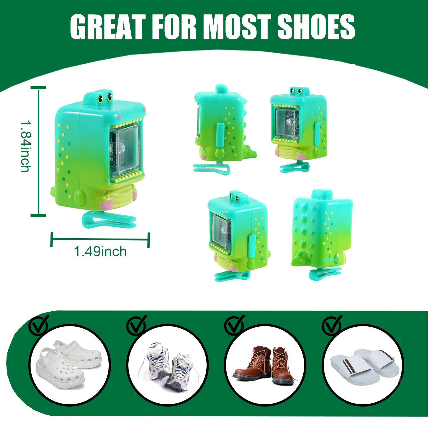 A Unique and Thoughtful Gift: Our dinosaur croc lights boast a charming and unique design. When set to flash mode, they playfully resemble a winking dinosaur. Whether you're treating yourself or surprising a loved one, these croc lights make a perfect gift choice for occasions like Children's Day, Halloween, Thanksgiving, and Christmas.