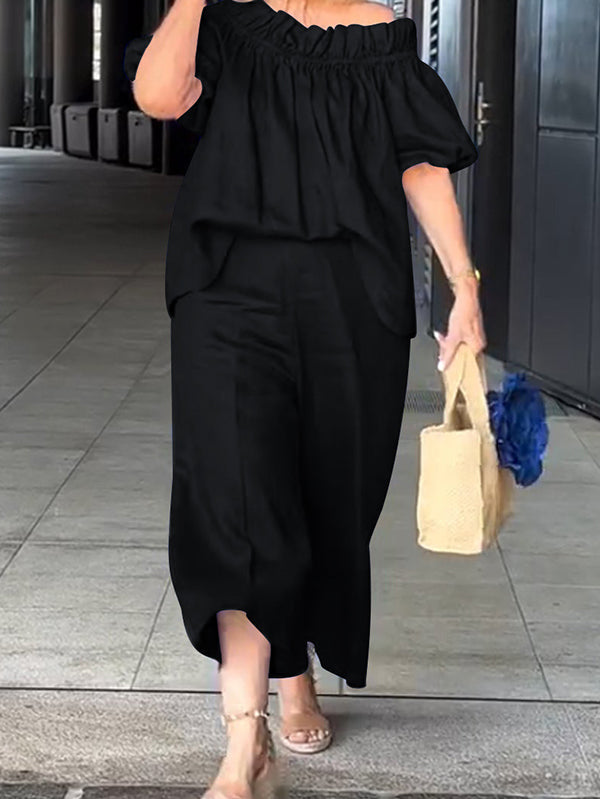 2025 New Style Off-Shoulder Ruffle Neckline Two-Piece Set