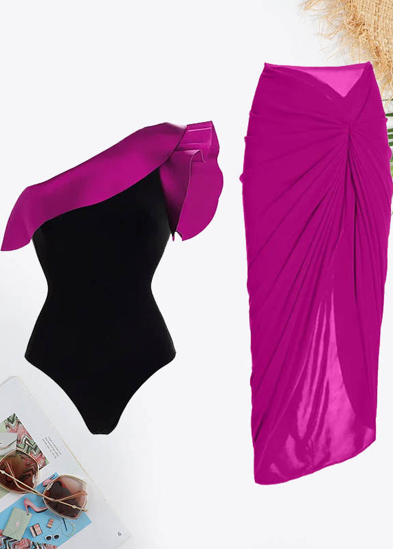 Colorblock One Shoulder Ruffle Trim Twist Front Swimsuit