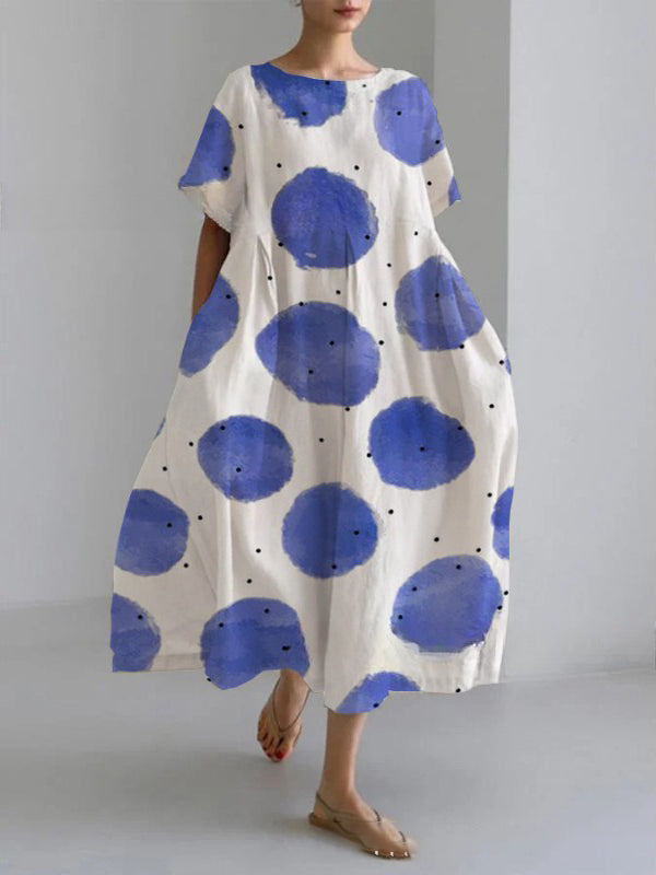 Comfortable Blue Printed Women's Linen and Cotton Dress