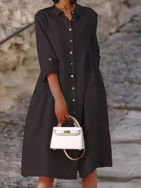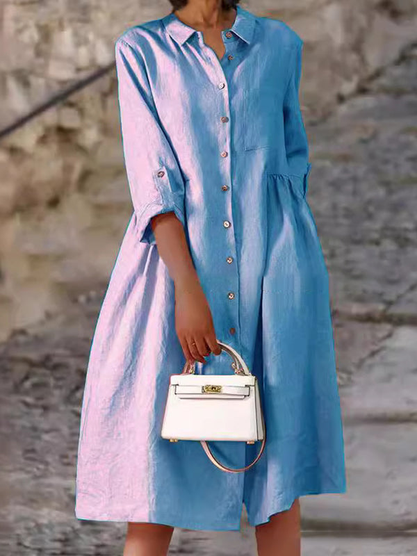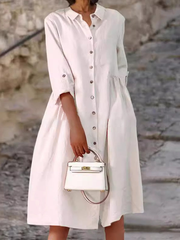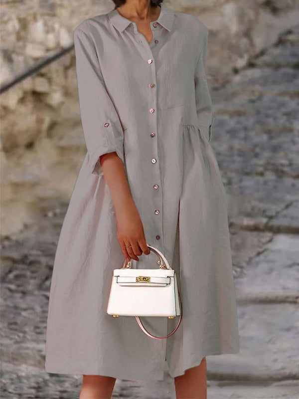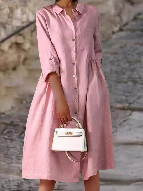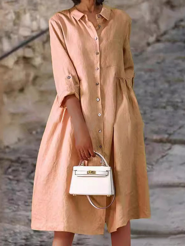 Elegant Ladies Button Cotton Pocket Dress