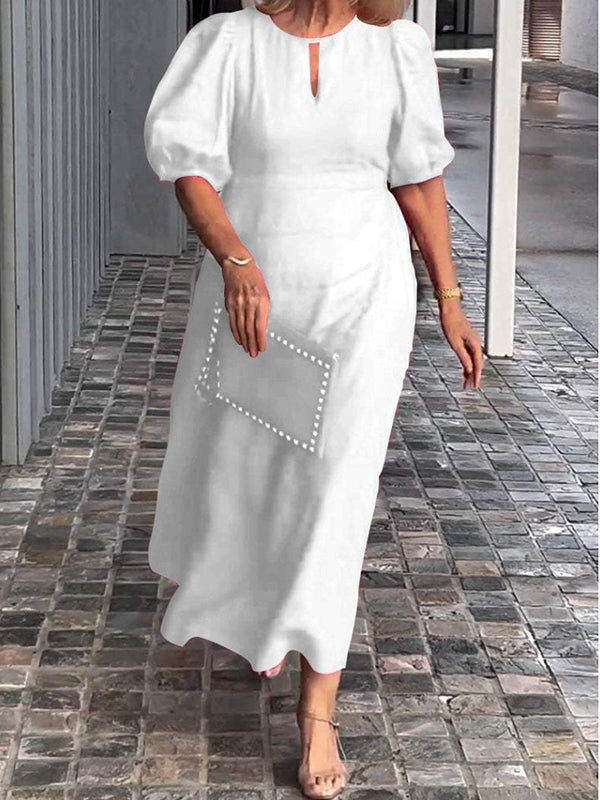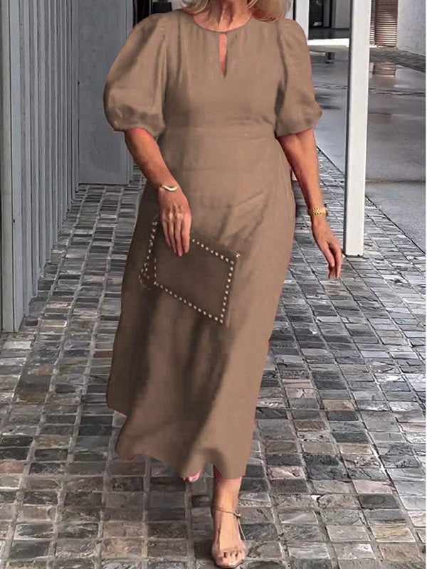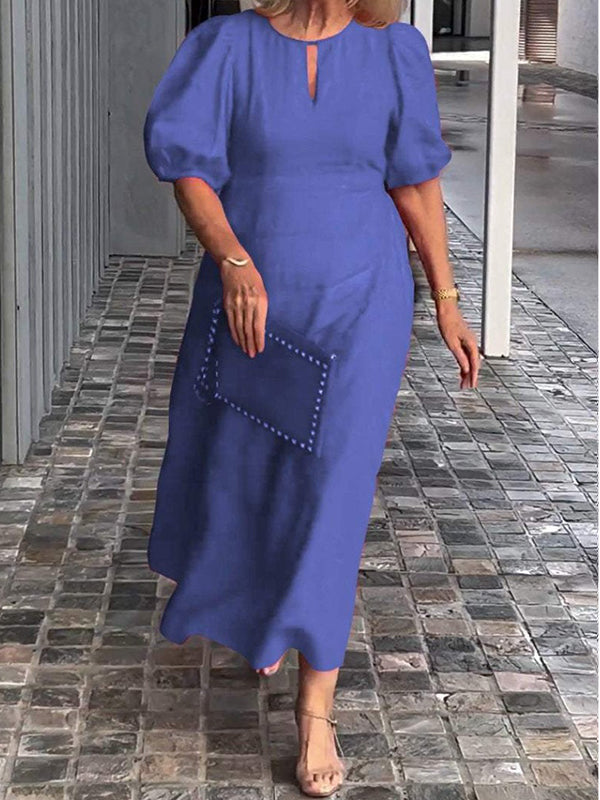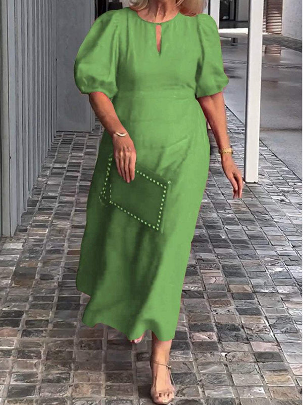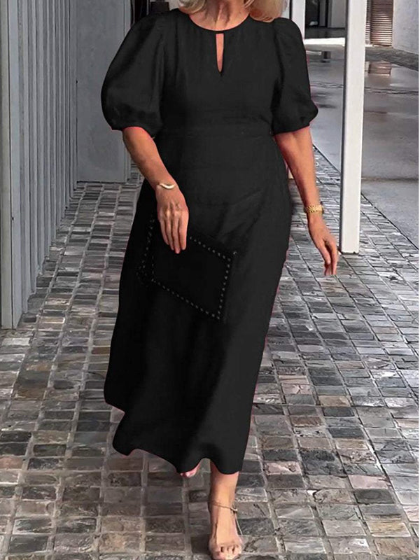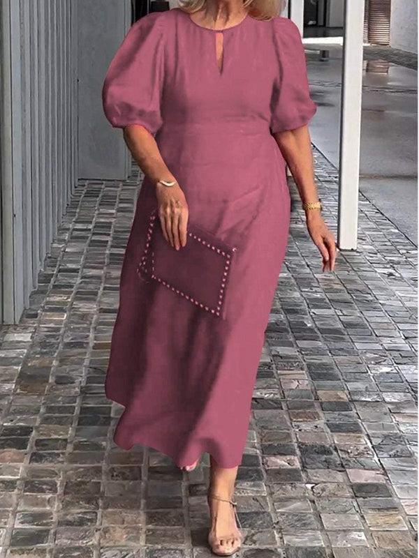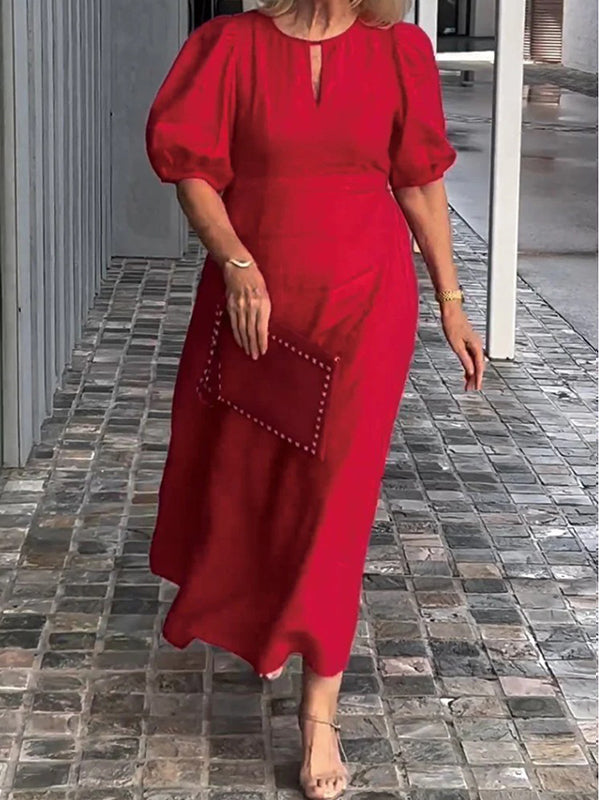 Elegant Round Neck Puff Sleeve Ladies Dress