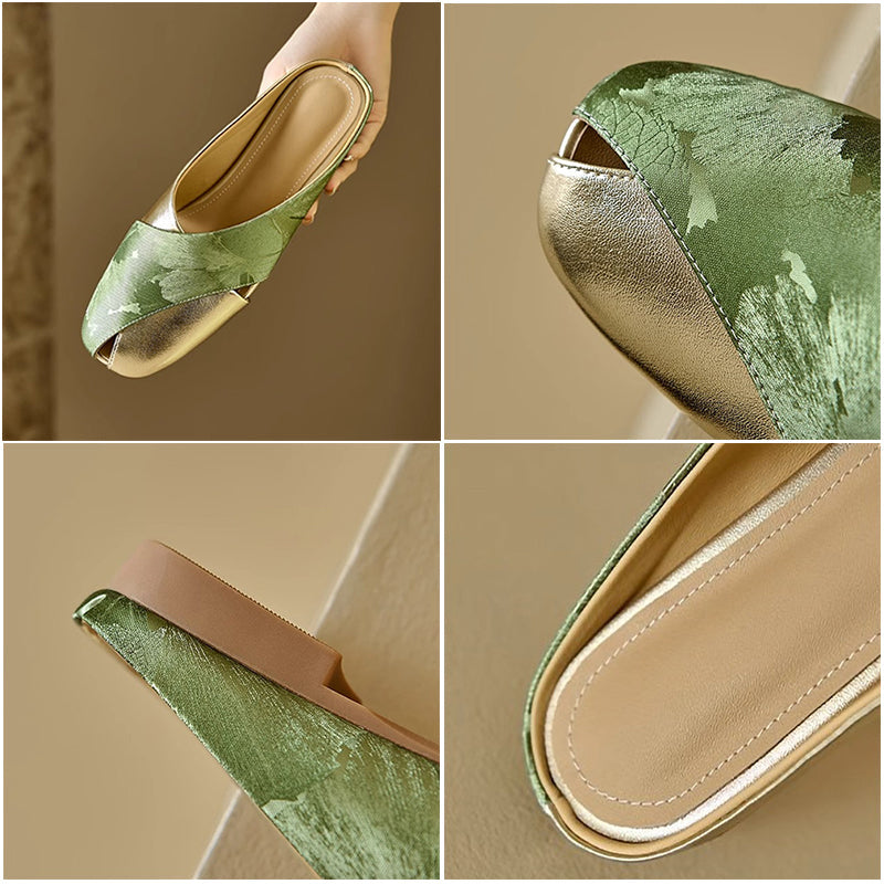Elegant Soft Leather Printed Colorblock Women'S Shoes