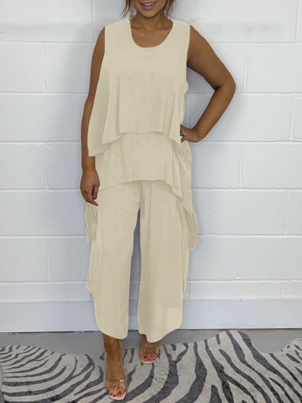 Fashionable Casual Sleeveless Women's Three-piece Suit