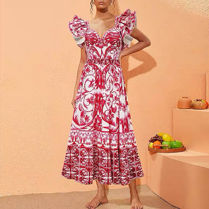 Floral Print Ruffle Trim Swimsuit