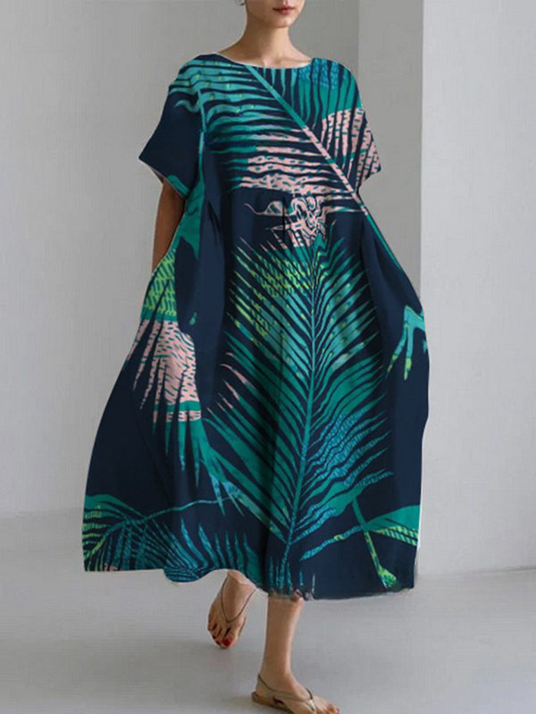 Forest Green Printed Women's Linen and Cotton Dress