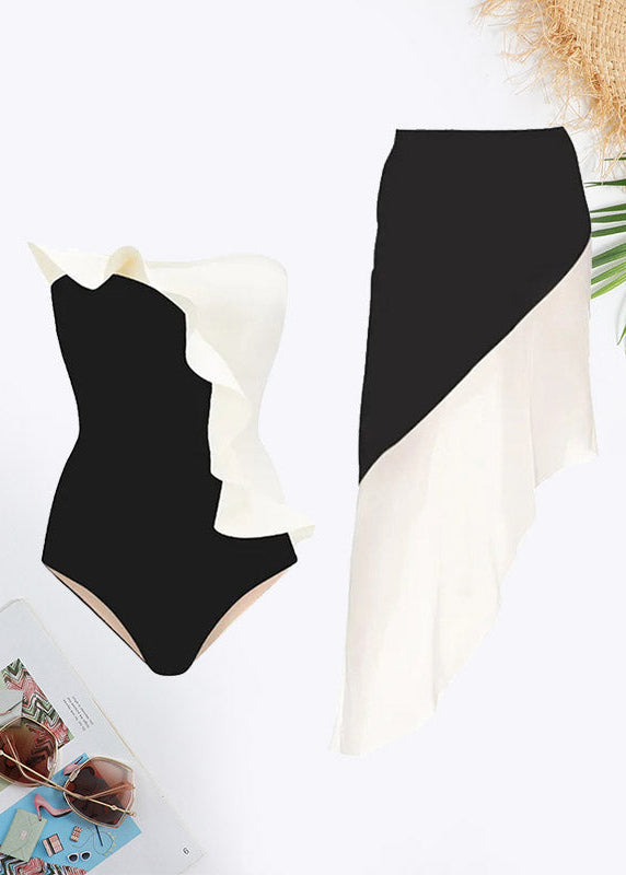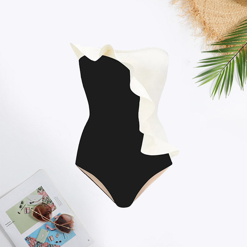 Champagne Showers Matte Colorblock Ruffle Trim Swimsuit