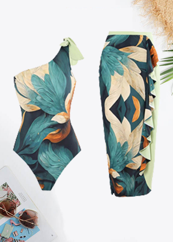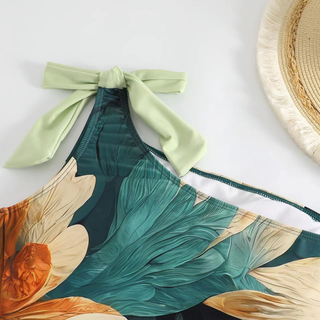 Brightly Shining Plants Print One Shoulder Swimsuit