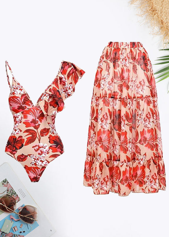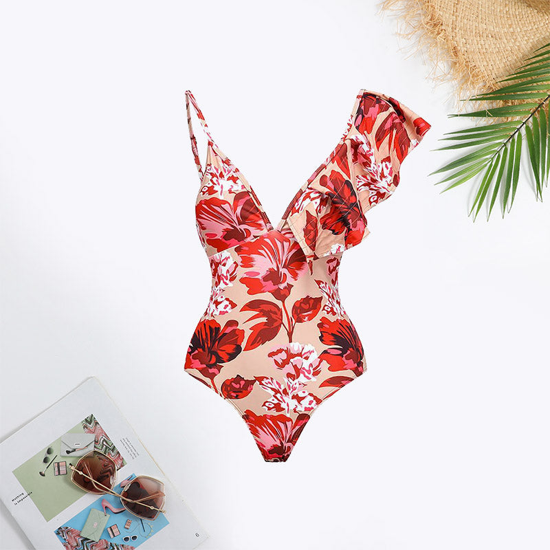 Such Sophistication Floral Print Ruffle Trim Swimsuit