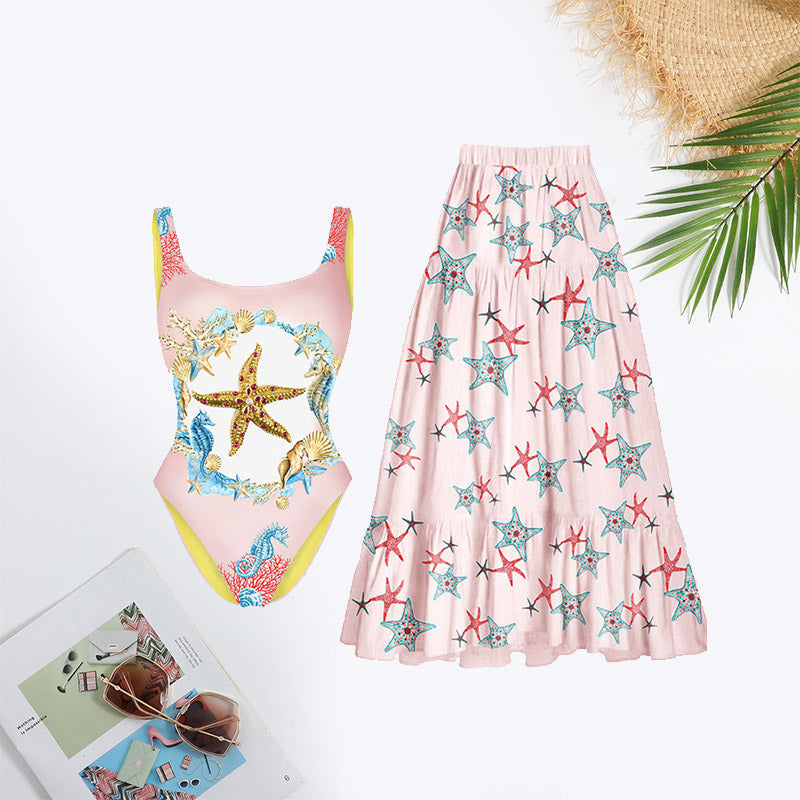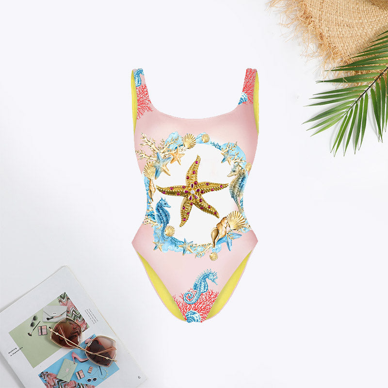 Rare Beauty Marine Animal Print Backless Swimsuit