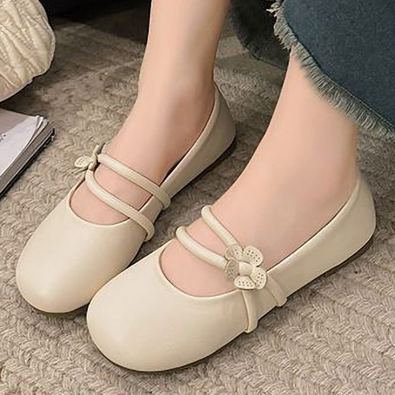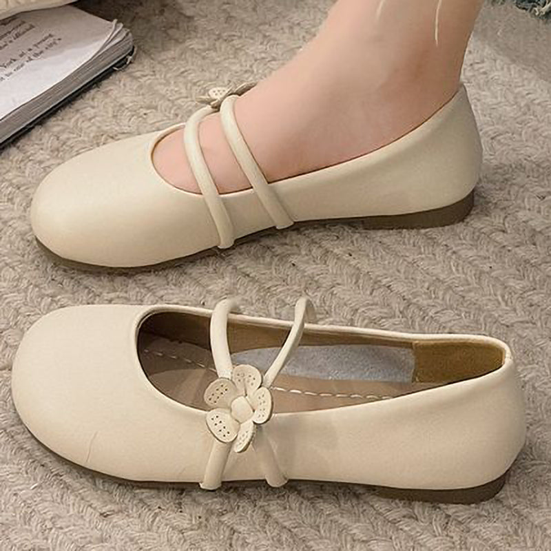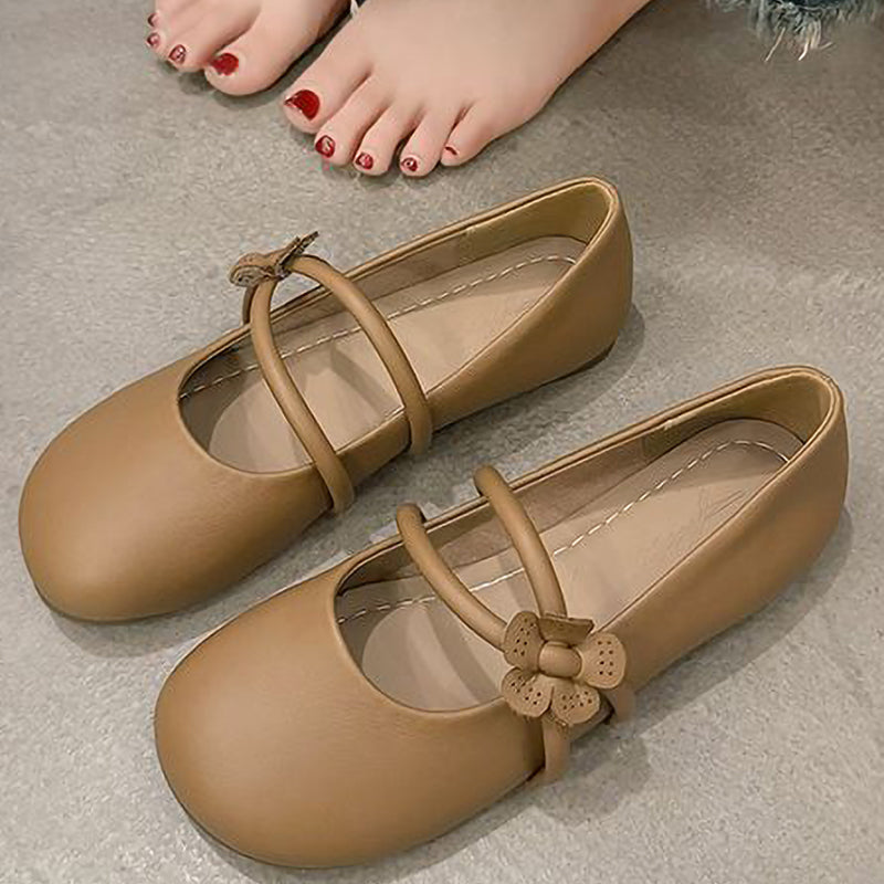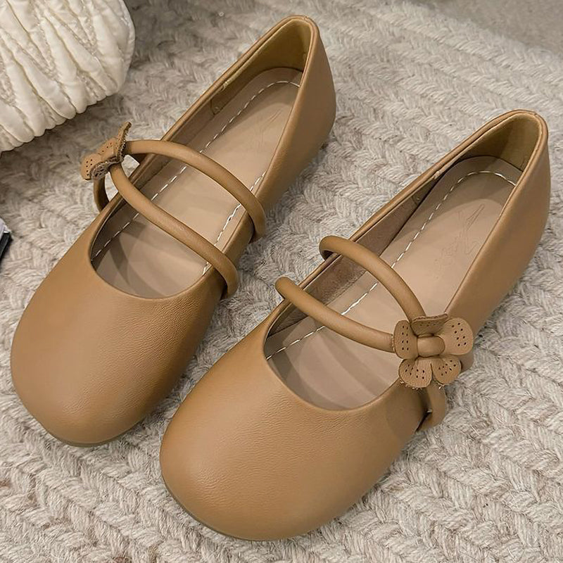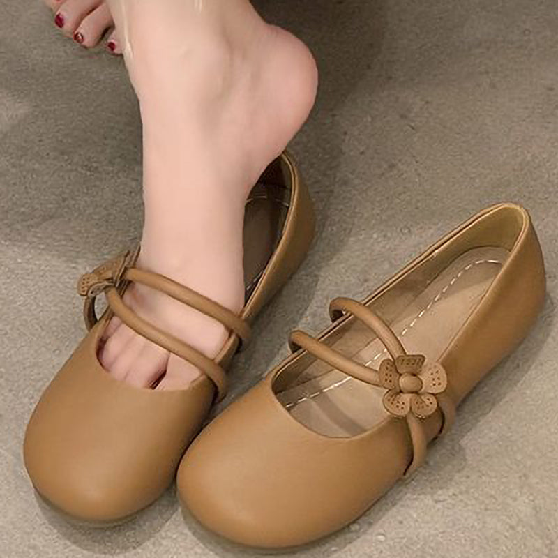 Lace-Up Flower-Decorated Soft-Soled Leather Shoes