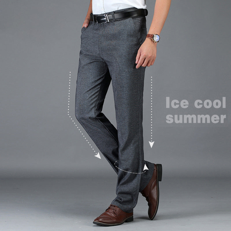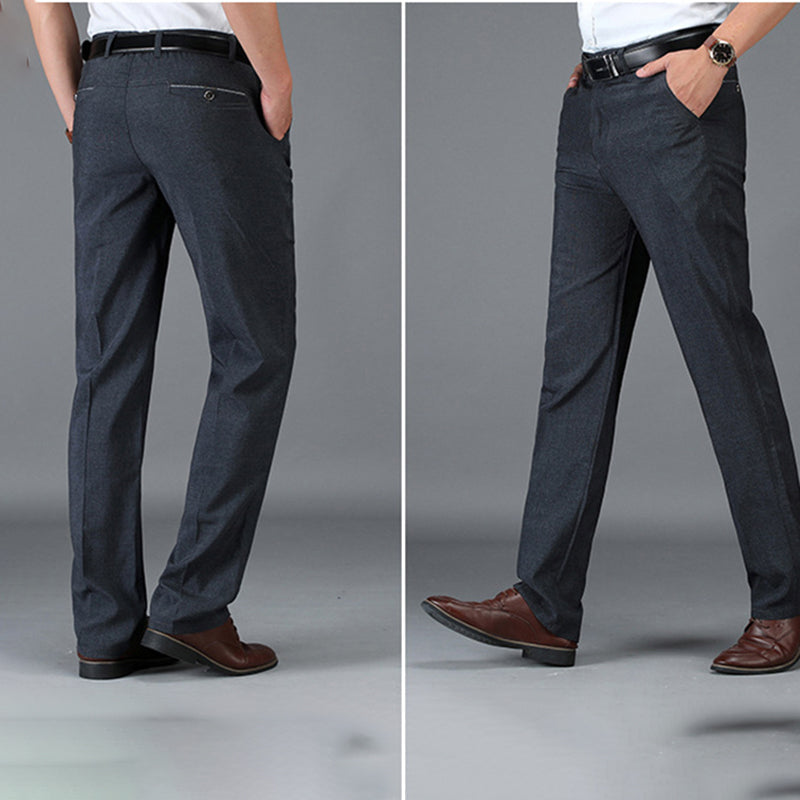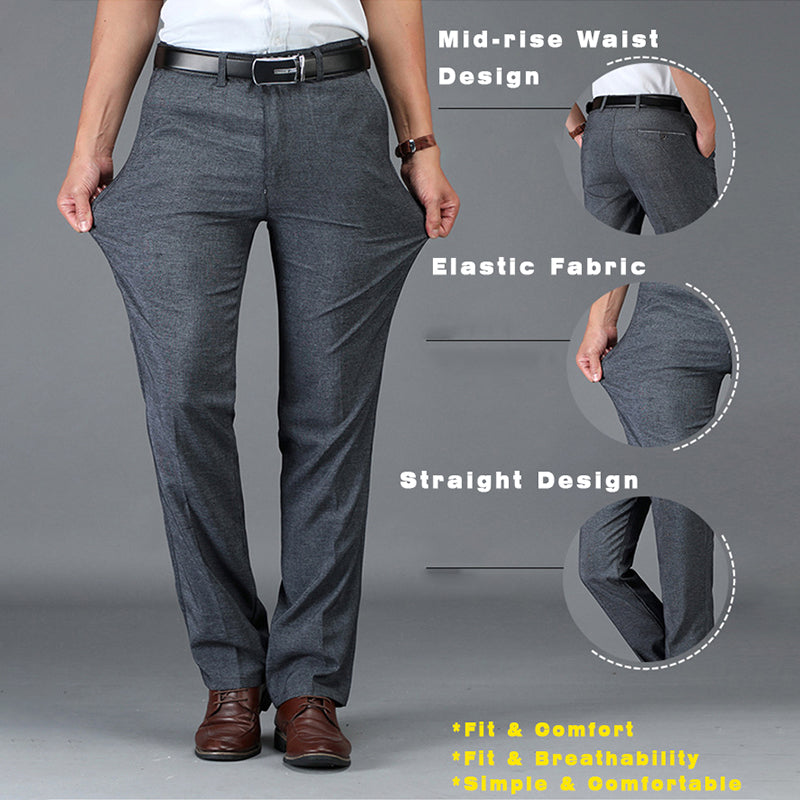 Men's Straight Mid-High Rise Elastic Fit Trousers