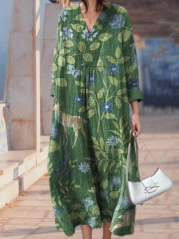New Green Flowers Animal Print Women's Top and Dress