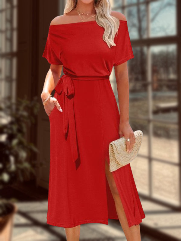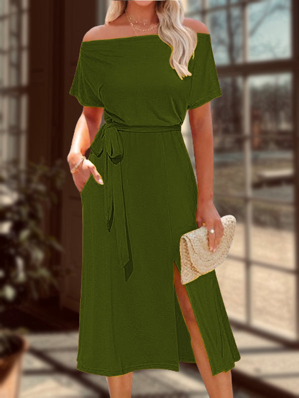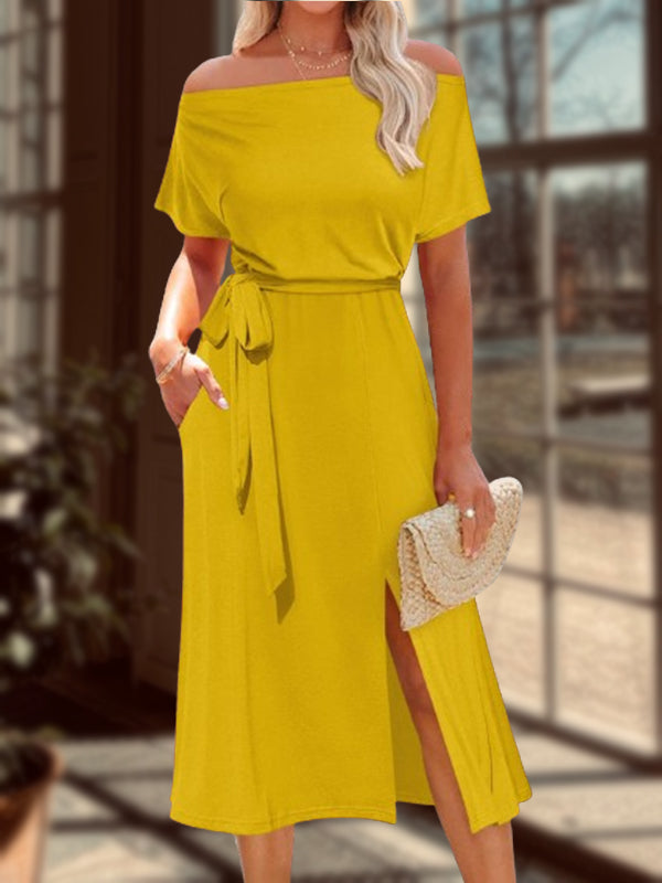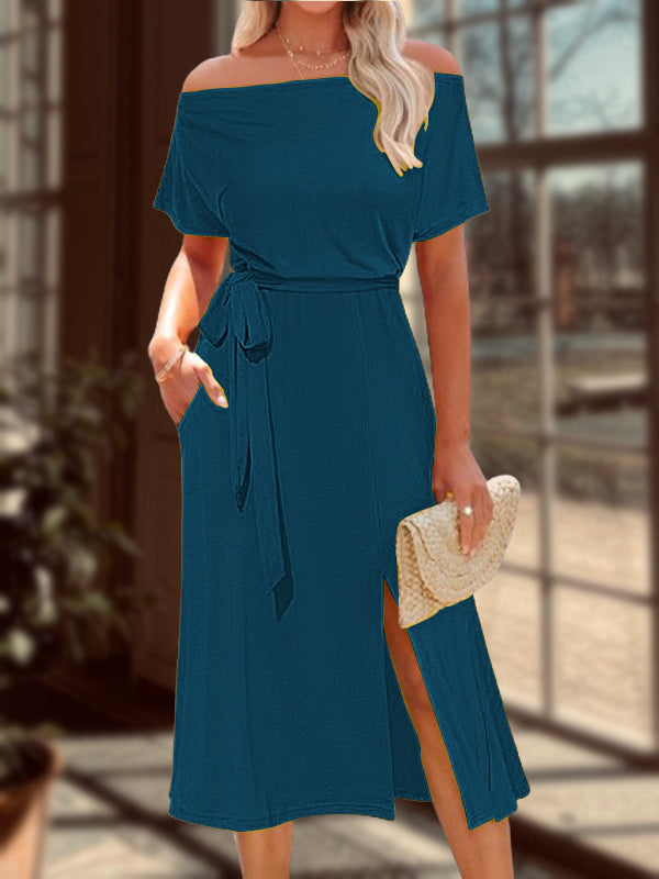 New Lace-up Waist Slit Ladies Dress