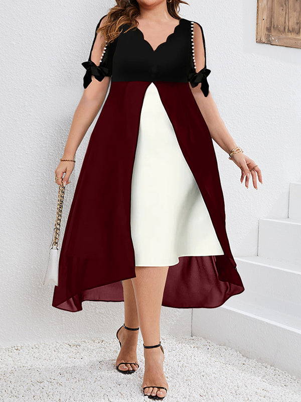 New Style Splicing Two Piece Irregular Butterfly Sleeve Dress