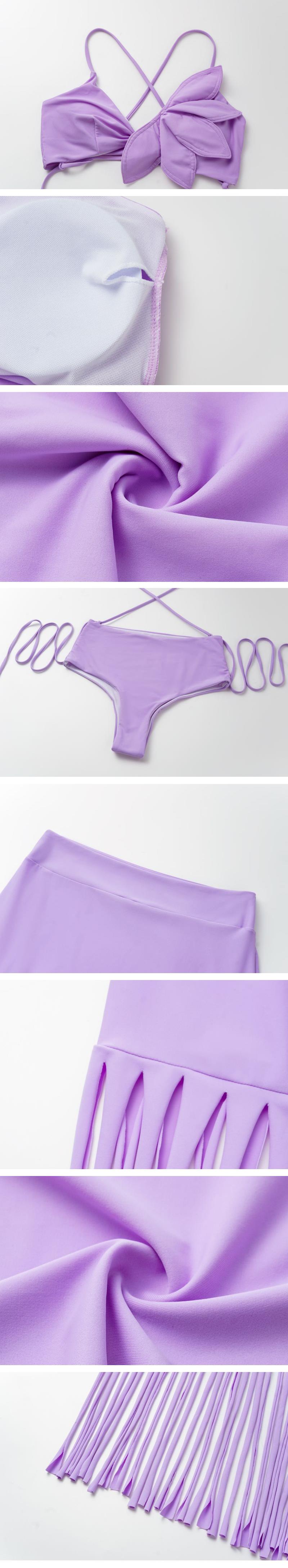 3D Flower Purple Tassel Bikini Swimsuit and Skirt