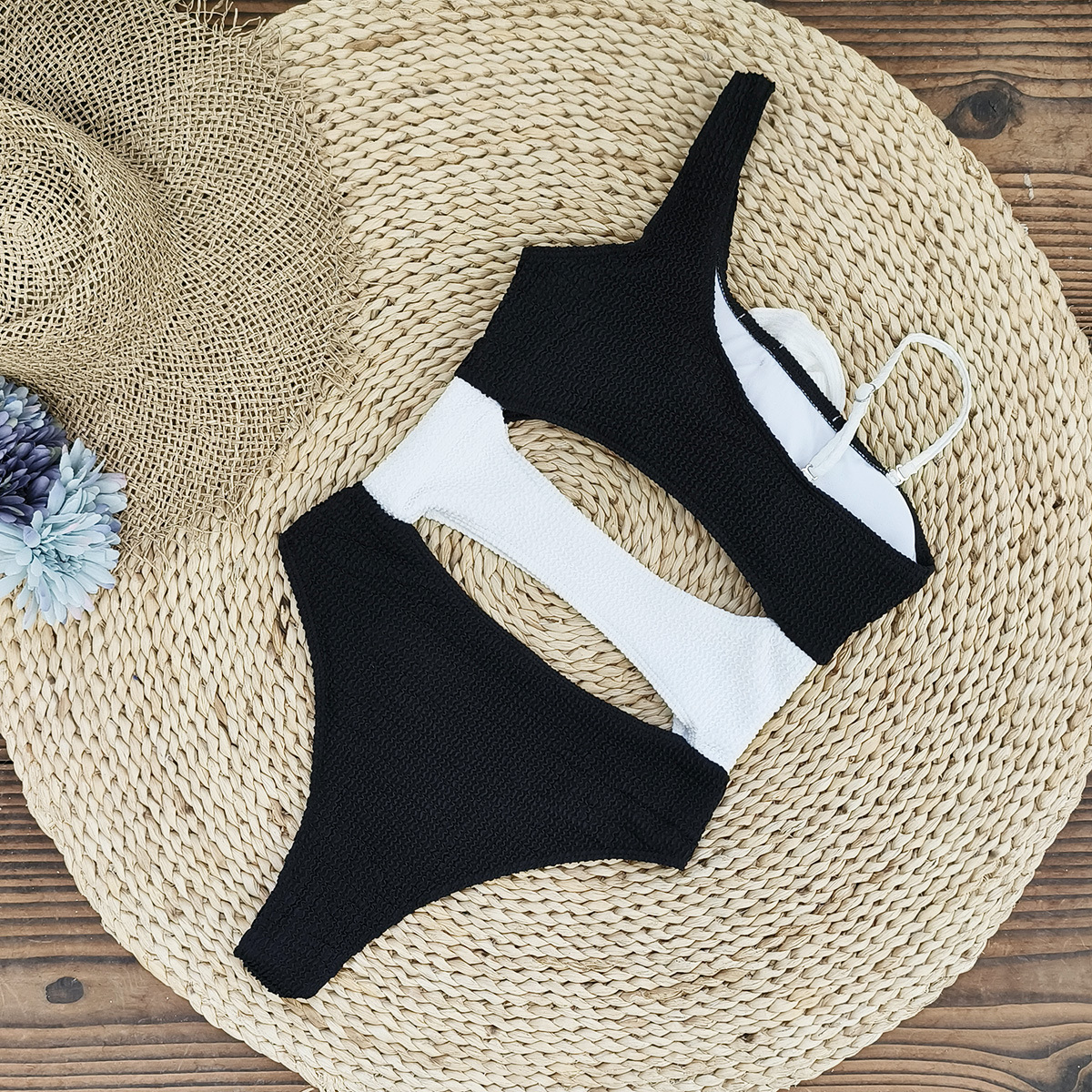 Color Block Cutout 3D Flower One Piece Swimsuit