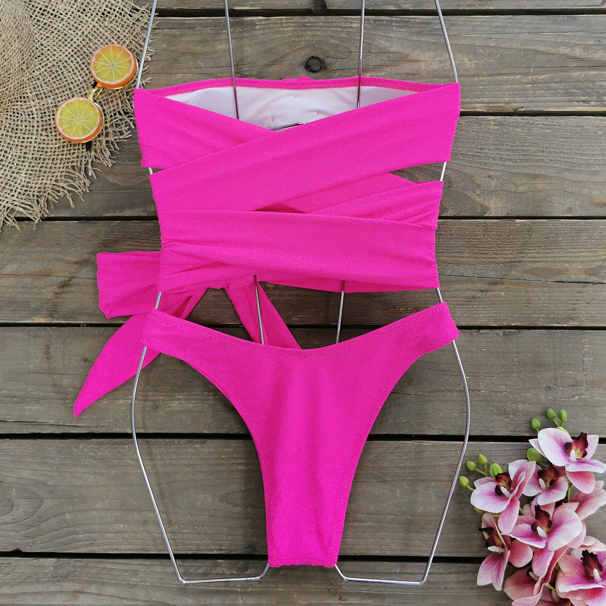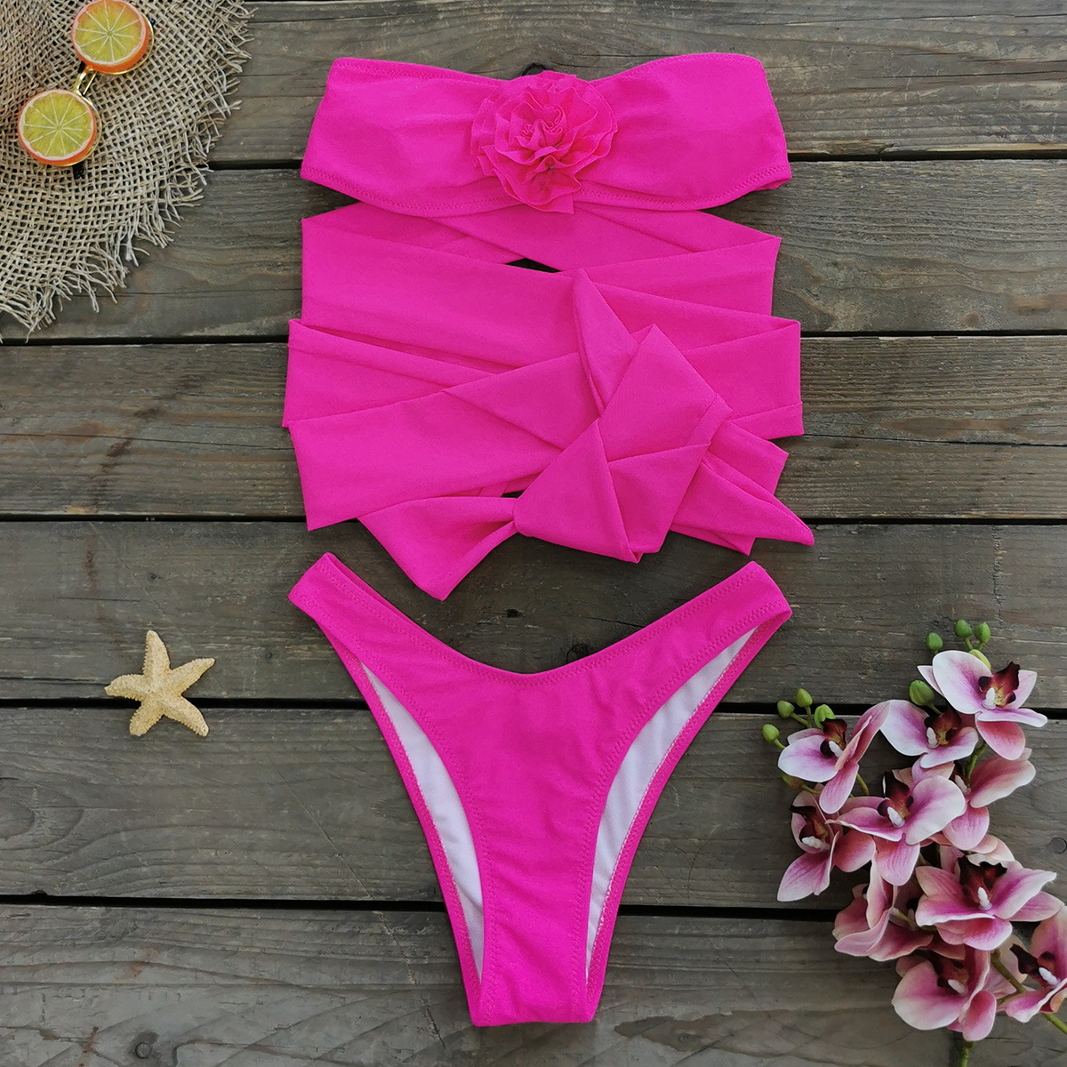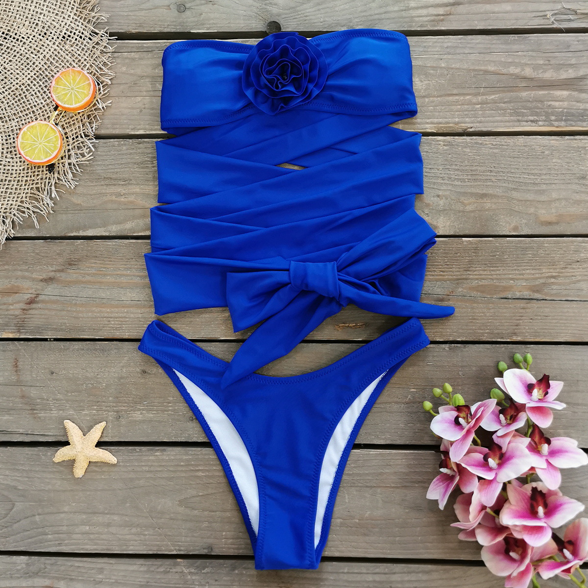 3D Flower Sexy Lace Up Bikini Swimsuit