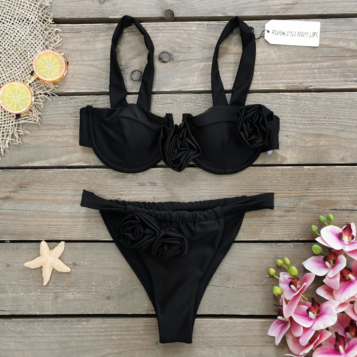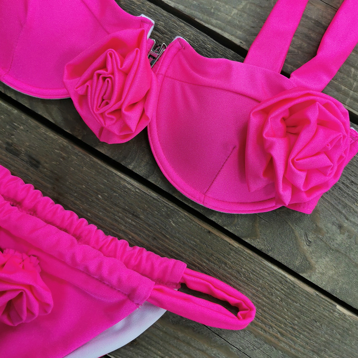 3D Flower Sexy Ruffle Bikini Swimsuit