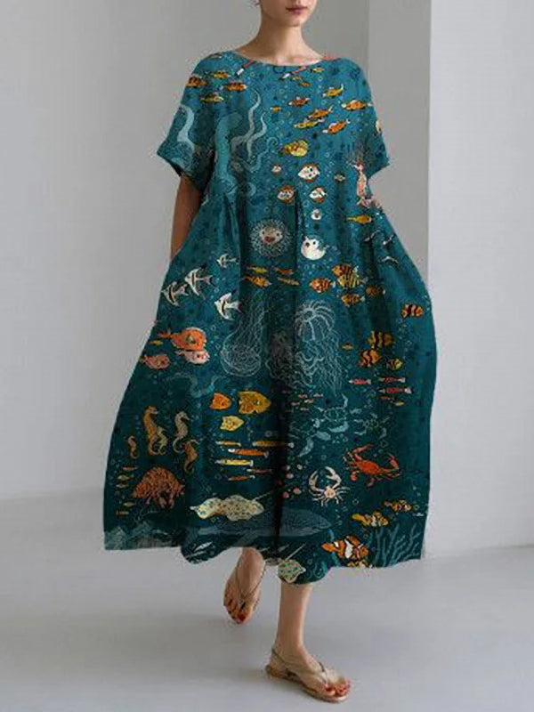 Underwater World Print Women's Linen and Cotton Dress