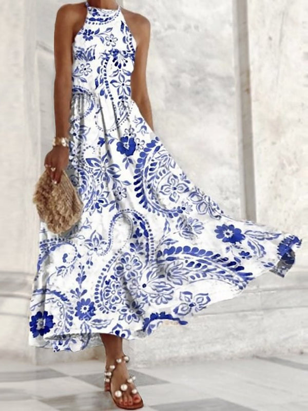 Women's Floral Art Print Casual Linen Cotton Top And Dress