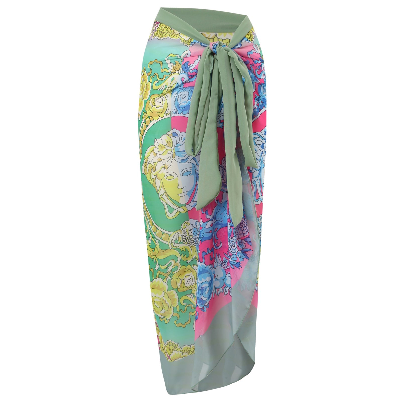Print One Piece Swimsuit and Splicing Sarong