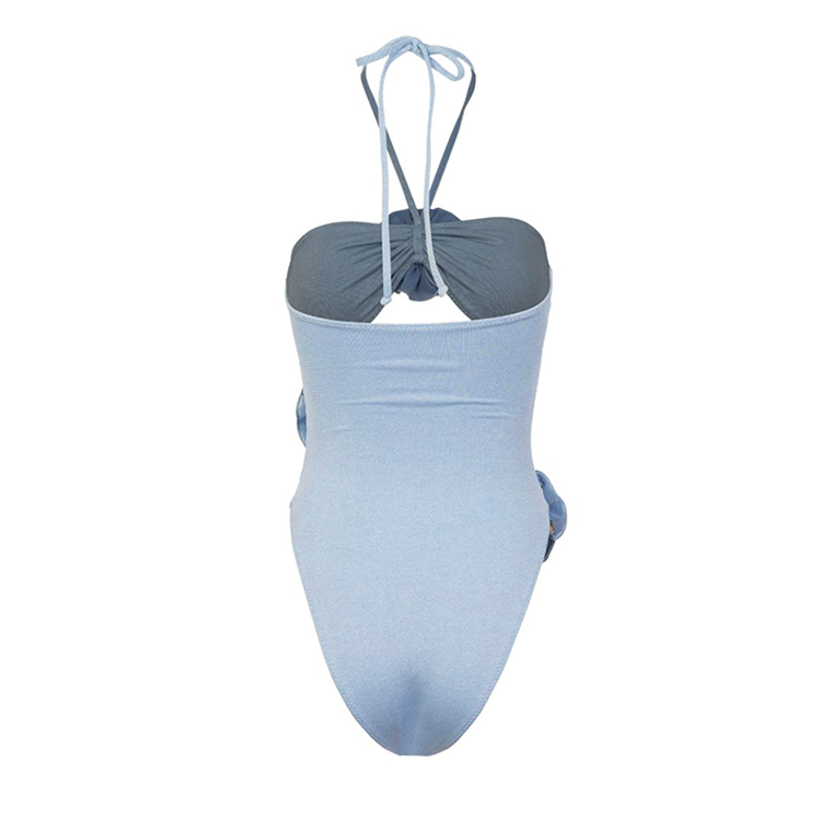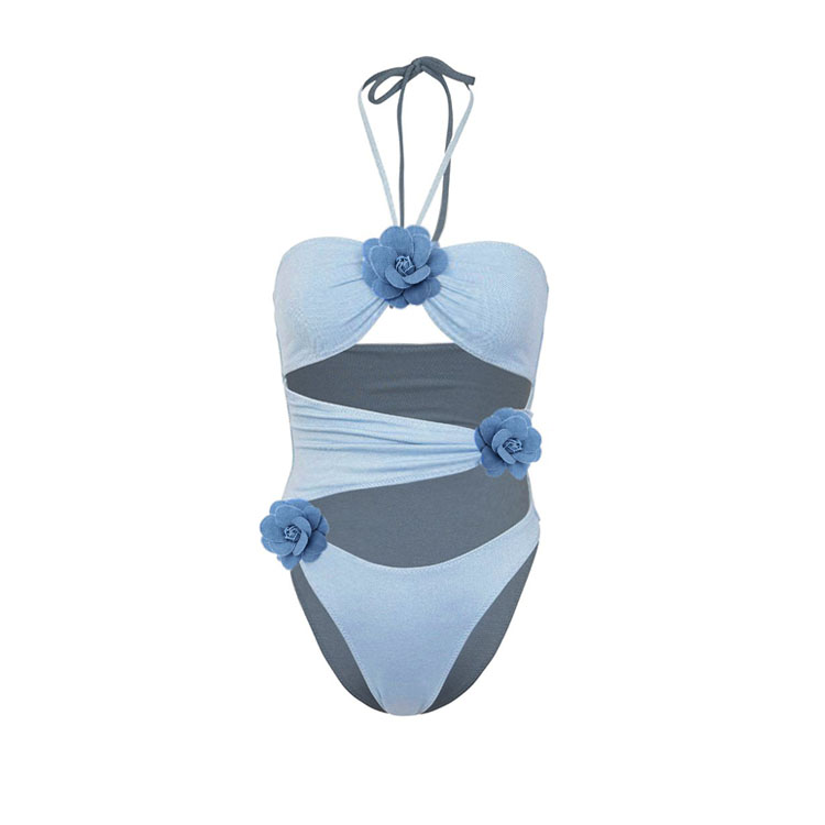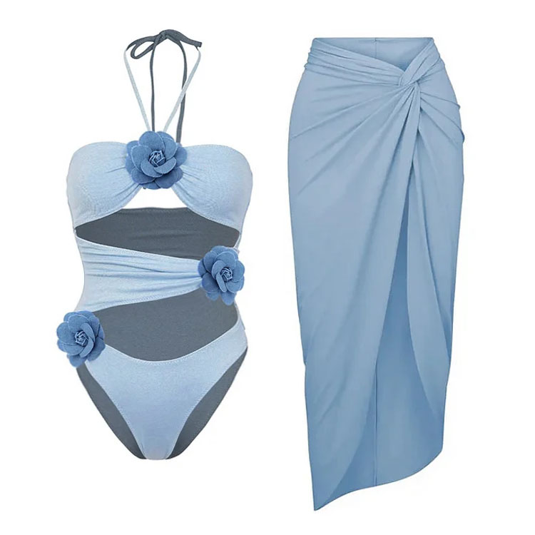 3D Flower Halter Cut out One Piece Swimsuit and Sarong