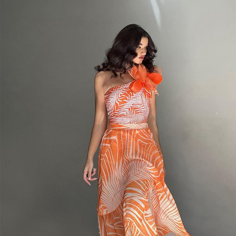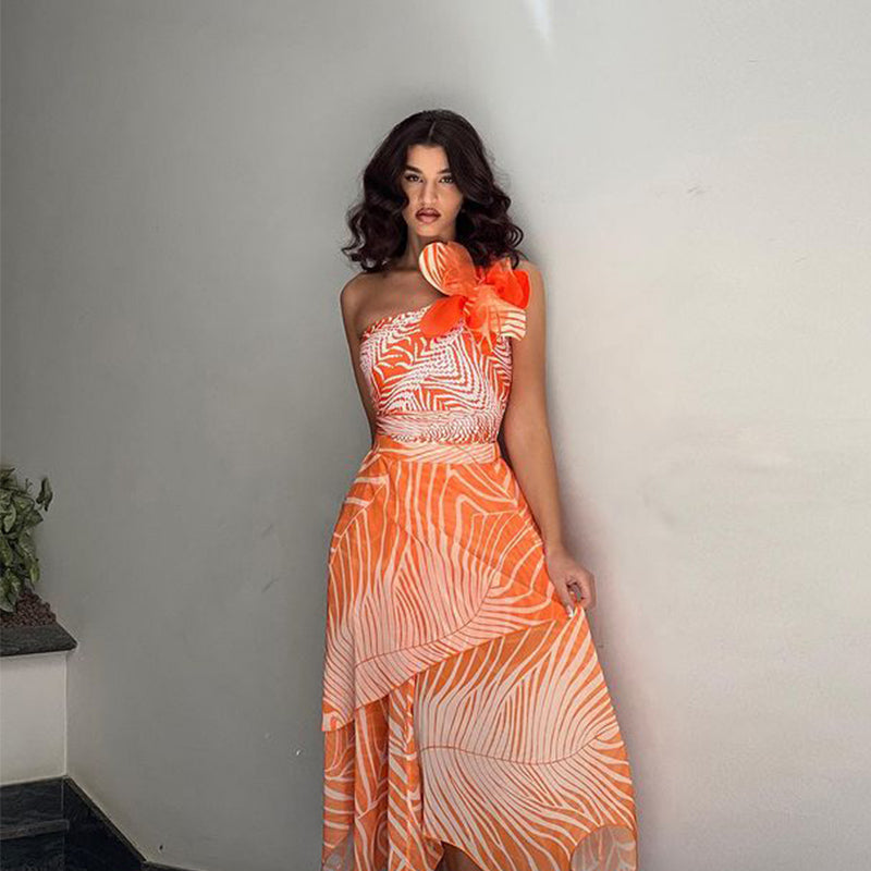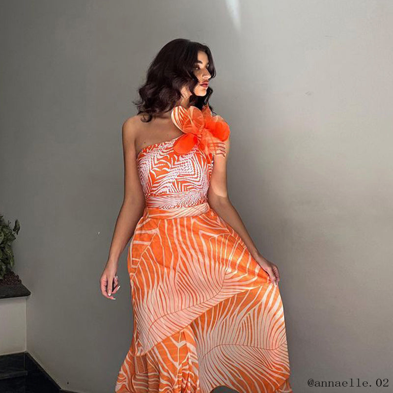 Vioye 3D Flower Printed One Piece Swimsuit and Skirt