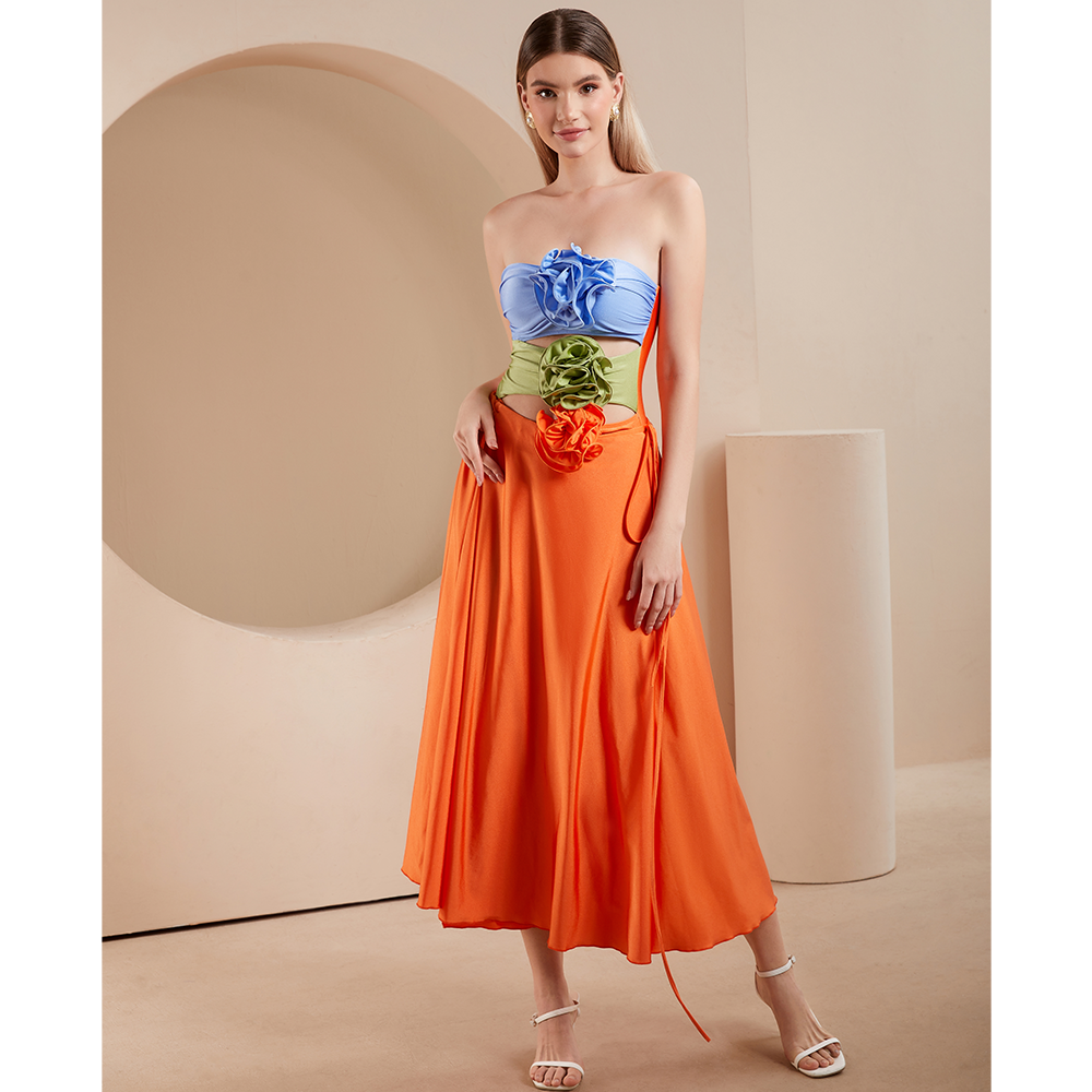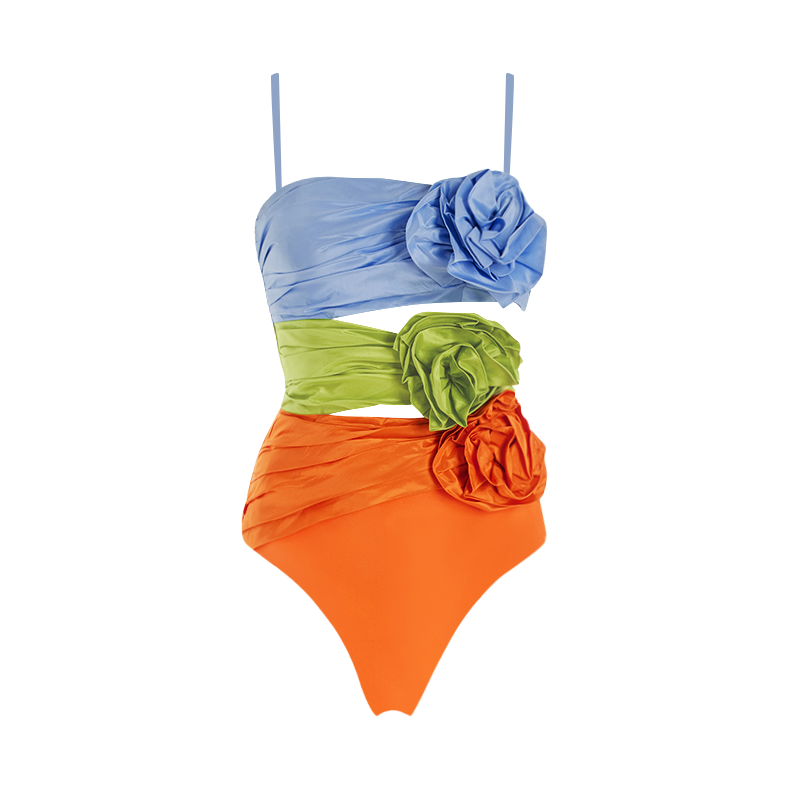 3D Flowers One Piece Swimsuit and Skirt