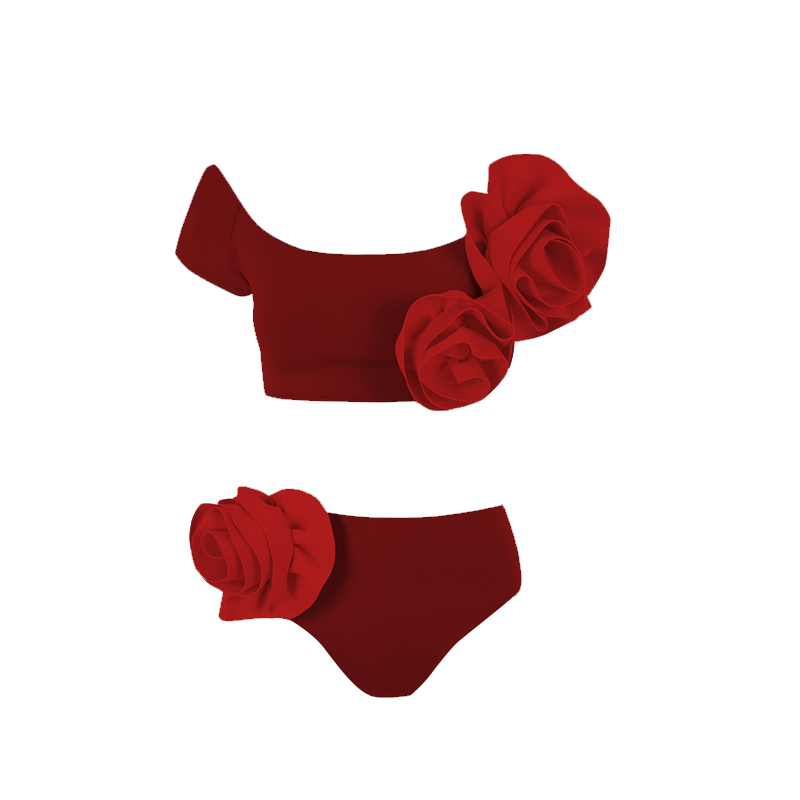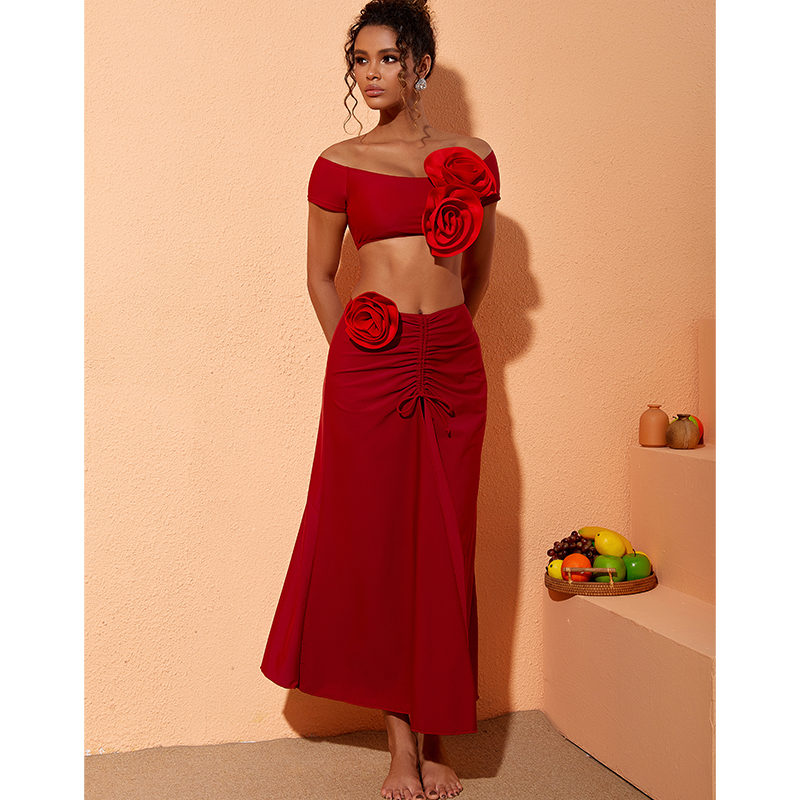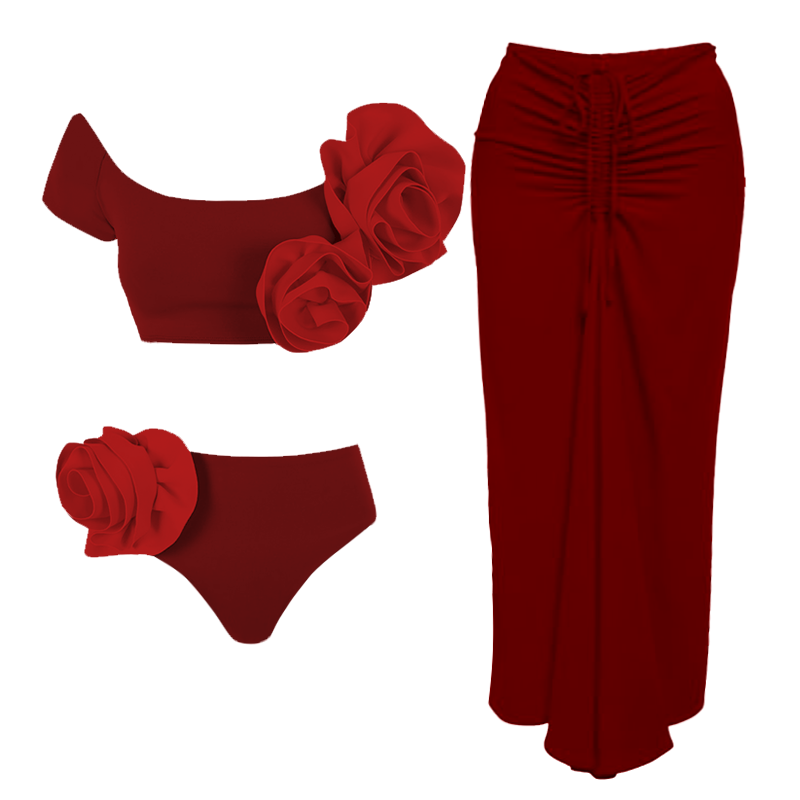 3D Flower Decor Bikini Swimsuit and Skirt