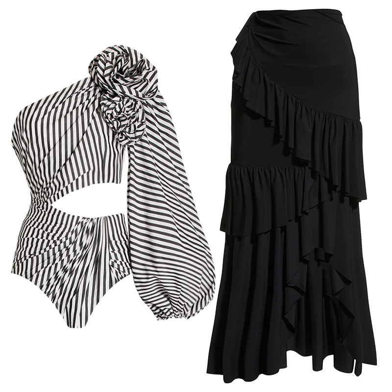 Removable Sleeves 3D Flower One Shoulder Swimsuit and Skirt